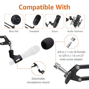 - Compatível universalmente com a maioria dos microfones, incluindo Blue Yeti, Blue Yeti Pro, Snowball e outros microfones