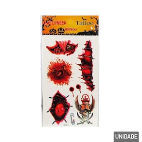 KIT de Tatuagem Temporária Halloween Complete seu visual assustador com o Kit de Tatuagem Temporária Halloween! Diversos desenhos temáticos para deixar a fantasia ainda mais realista.\nFáceis de aplicar e remover, as tatuagens são seguras para a pele e ideais para festas, brincadeiras ou maquiagem artística.\nDisponível em cores e modelos.\nEspecificações:\nMarca : LU FEST\nTipo de material : Plástico, Cola\nCores ou Estampa :\nDimensões do Produto : 23 X 11 X 0,5 CM\nDimensões da Embalagem : 23 X 11 X 0,5 CM\nPeso Bruto (Gramas) : 0.011