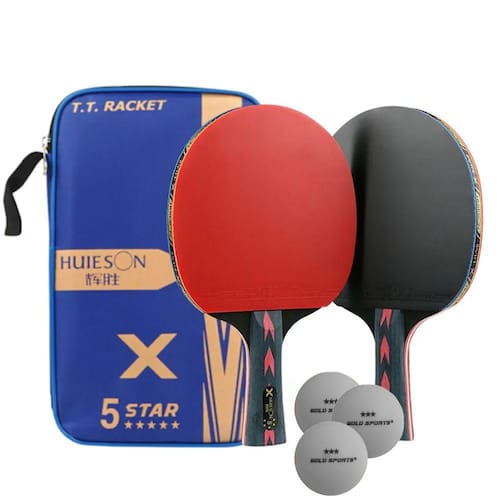 O Kit de Tênis de Mesa Huieson Carbon-2 Raquetes long 5 Star + bolsa e 3 bolas Gold Sports 3 Star foi projetado para oferecer golpes super poderosos, tornando-o perfeito para jogadores avançados que desejam dominar a mesa. • Cabo Longo reto para melhor controle :A aderência de suas mãos no cabo reto destas raquetes de tênis de mesa fornece excelente controle, permitindo que você acerte golpes precisos e ganhe pontos com facilidade. • Madeira pura de qualidade mais fibra de carbono para durabilidade :A construção completa de madeira e fibra de carbono destas raquetes de tênis de mesa garante durabilidade e longevidade, tornando-a uma escolha confiável para uso a longo prazo. • As borrachas lisas com pinos internos ideal para melhor defesa : Os pinos internos de borracha destas raquetes de tênis de mesa fornecem excelente controle, permitindo que você coloque controle em suas rebatidas e pegue seu oponente desprevenido. Características: 1. feito de lâmina de fibra de carbono preto e vermelho, de grande poder interno. 2. Design super leve, confortável de manusear e controlar para crianças e meninas. 3. A borracha boa aderência, por isso é adequada para prática ofensiva para jogadores seniores. 4. As raquetes são embalada com o pvcde qualidade de Oxford para protegê-la, e é um presente agradável para seus filhos. 5. É normal que a nova borracha cheire. Portanto, é melhor expôr ao ar por 1 dia antes do uso. Especificação: Item: 2 raquetes de tênis de mesa, 1 bolsa e 3 bolas 3 estrelas Tipo: Cabo longo reto e clássico Lâmina de madeira: Camada 5 de madeiras e fibra de carbono Borracha: Dupla lisa por fora com esponja em embaixo e com pino longo sendo uma vermelha e preta Peso: 1915g / 2085g Aproximadamente Espessura: 7mm Aproximadamente Pacote incluído: 2 raquetes 5 estrelas, 1 bolsa e 3 bolas brancas 3 estrelas 40+ Marca: Huieson - Gold Sports Garantia: 1 mês contra defeito de fabricação Composição: Borracha, Pvc, Madeira, Fibra de carbono, Ferro, Poliester e Abs