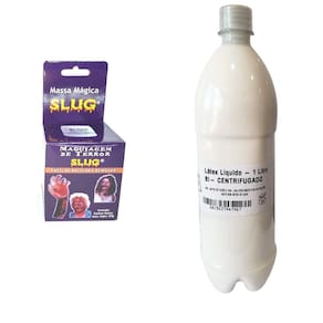 Especificações técnicas do produto: Massa slug: Pode ocorrer algum tipo de alergia Pode ocorrer alergia, caso você tenha sensibilidade a alguns componentes citados acima. Com slug você pode caminhar ao sol sem nenhum tipo de preocupação em relação a reação alérgica, pois ela não contém nenhum tipo de cola ou amônia. Os ingredientes utilizados neste produto são reconhecidamente seguros. Como ocorre em alguns cosméticos, algumas pessoas podem apresentar sensibilidade a algum componente. Recomenda-se aplicar o produto em uma pequena quantidade na parte interna do pulso e removendo-o após 30 minutos. Aconselhamos a usar em crianças acima de 7 anos de idade com o auxilio de um adulto para evitar ingestão acidental. Quanto tempo leva para secar Dependendo da espessura da maquiagem ela seca em aproximadamente 20 minutos. Se tiver utilizado algodão ou gaze ela demora um pouco mais, neste caso você poderá acelerar o processo da secagem com auxilio de secador na temperatura fria e com distância de 30 cm do local aplicado. Qual a duração Dura de 1h a 2 horas na pele podendo varias de acordo com o tempo   temperatura, ambiente, clima . Ou dependendo dos cuidados de quem está usando como: excesso de suor, ou ficar colocando/ retocando várias vezes, podendo levar a maquiagem a se desmembrar. A maquiagem slug proporciona que o ator/atriz movimente livremente o rosto sem perder as expressões. A massa craquela algum tempo depois de colocada pois como contém água, esta evapora. Para prolongar a durabilidade desta aconselhamos assistir tutoriais no canal terror slug. Lá existem técnicas de algodão e outros mais direcionados a profissionais da área. Como retirar Retirar com água morna e sabão neutro, se quiser, papel higiênico para retirar o excesso e depois um demaquilante também é aconselhável. Usamos também lenços umidecidos. Dicas básicas: Quando fizer uma maquiagem no rosto dos clientes, não esquecer de colocar uma toalhinha para evitar eventuais problemas em relação a pingos. Para realizar a maquiagem deixe sempre um pote pequeno de água para poder molhar aos poucas a espátula ou os dedos para dar acabamento nas laterais Massa Magica . Kit de Maquiagem de Terror para Festas e Teatro, ideal para criar efeitos de queimadura, cortes, feridas e hematomas. Pode ser Utilizado em Peças Teatrais, Festas de Terror, Festa de Halloween, Dia das Bruxas, Truques de Ilusionismo, e também para cobertura de tatuagens. O kit rende de 10 a 15 feridas pequenas. látex: Látex centrifugado pré vulcanizado. Utilizado geralmente no auxílio para impermeabilizar a maquiagem/massa, proporcionando cenas externas na chuva, mergulho, etc... Também para prolongar a duração da mesma. Aconselha-se que este produto seja Utilizado por , pois requer muitos cuidados na manipulação. Látex de alta qualidade especialmente formulado pra confecção de máscaras e próteses em geral para maquiagem e objetos. Encha o molde de gesso com látex até a boca, deixe descansar por algumas horas, despeje o látex de volta no frasco e deixe o molde de boca pra baixo até que o látex seque por completo, passe talco dentro e fora da peça de látex para que as paredes não grudem entre si.. Para tingir o látex use corantes a base de água. OBS: Cuidado ao fazer uso do látex perto de tecidos e ou roupas, pois ele danifica e não sai mais.