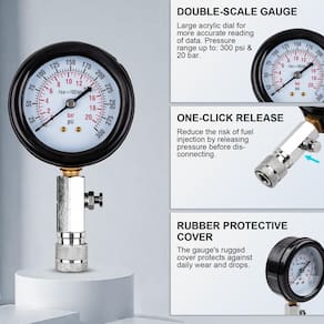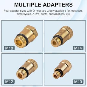 O kit testador de compressão do cilindro do motor Clatoon pode ajudá-lo a verificar de forma rápida e precisa a compressão do motor a gasolina. Incluído na embalagem: 1 medidor de compressão cilíndrico. 1 × extremidade reta de cone de borracha. 1 × extremidade de cone de borracha curvada 4 × Adaptador de metal: M10, M12, M14, M18 1 mangueira de extensão de 35,5 cm (14") 1 estojo de transporte. 1 manual do utilizador (sem garantia de versão Leia as instruções cuidadosamente e use a ferramenta de teste com segurança. Consulte o manual de instruções para o procedimento de teste. NÃO use equipamento se estiver danificado. Mantenha o equipamento em boas e limpas condições para um desempenho melhor e mais seguro. Os avisos, cautelas e instruções referidos neste manual não podem abranger todas as condições e situações possíveis que possam ocorrer. Deve ser entendido que o bom senso e a cautela são fatores que não podem ser integrados neste produto, mas devem ser aplicados pelo operador. - Kit de testador profissional: nosso kit testador de compressão do cilindro do motor ajuda você a medir a pressão no cilindro do motor a gasolina de forma rápida e precisa. Feito de materiais escolhidos e tratado com prevenção de ferrugem e prevenção de corrosão, resistente e à prova de tempo - Calibre de compressão: mostrador acrílico grande e medidor de escala dupla para uma leitura mais precisa dos dados. Faixa de pressão até: 300 psi e 20 bar. Pressão de liberação com um clique antes de desconectar para reduzir o risco de injeção de combustível. Vem com revestimento resistente a riscos e capa protetora de borracha - Conexão universal: dois adaptadores de cone de borracha universais fornecem conexões rápidas e fáceis, adequadas para a maioria das profundidades das velas de ignição, e uma mangueira estendida permite que você entre em espaços apertados. Conecte com o mostrador usando um acoplador de conexão rápida, simples e rápido - Acessórios completos: o kit de testador de compressão de cilindro inclui: 1 x medidor de compressão, 2 x extremidades de cone de borracha, 4 x adaptador de metal, mangueira de extensão de 1 x 35 cm e 1 x manual. Quatro tamanhos de adaptadores estão amplamente disponíveis para a maioria dos carros, motocicletas, quadriciclos, barcos, motos de neve, etc - Observação: a maioria dos motores a diesel não usa medidores de pressão do motor devido à baixa faixa de pressão. Leia o manual cuidadosamente antes de usar o kit testador de compressão. Se você tiver alguma dúvida sobre nossos produtos ou serviços, encontraremos uma solução satisfatória para seus problemas
