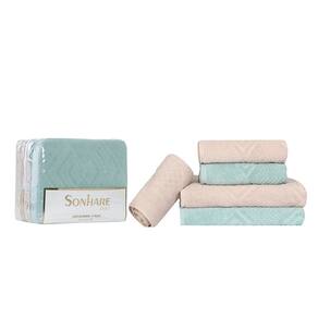Contém 5 peças de Alta Qualidade: 2 Toalha de Banho 2 Toalha de Rosto 1 Toalha de Piso/Tapete para os pés
