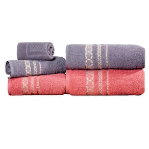 Kit de Toalhas de Banho 5 peças 420g/m² Rosa Blush/Grafite Romance Sonhare Prata Sultan