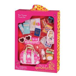 Acessórios de viagem para bonecas de 46cm Para aventuras divertidas desde o embarque até o passeio pela cidade com esse lindo conjunto de viagem Our Generation Suas bonecas favoritas se transformarão em sofisticadas viajantes com direito a lanchinhos, baralho de cartas, passaporte, carteira, cartões de embarque, câmera, óculos de sol, produtos de higiene pessoal e uma mala. Cada peça é perfeitamente dimensionada para as bonecas Our Generation. Acessórios faz de conta. Boneca vendida separadamente. Our Generation não se trata apenas de uma boneca, um lindo conjunto de roupas ou mesmo um kit de acessórios fantásticos. É sobre incentivar crianças de todos os estilos e gostos a criar suas próprias histórias, desenvolvendo um universo ilimitado de brincadeiras com bonecas e acessórios. Sua embalagem é feita de material reciclado, especialmente desenvolvida para uma geração mais ecológica que não aceitaria nada menos. Essa é a nossa história, e essa é a nossa turma Homologação Inmetro: IP-BRI-1866/2021-01