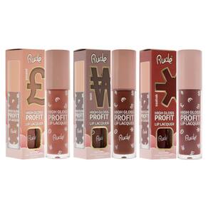 Kit de verniz labial Rude Cosmetics High Gloss Profit 3 peças