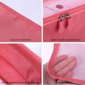 Contém: 03 - bolsa organizadora tipo cubo tamanhos p, m, g , rosa 03 - necessaire tamanhos p, m e g , rosa Organize sua mala de forma prática e eficiente com esse kit de organizadores de viagem. Perfeito para quem busca otimizar espaço, manter tudo no lugar e ter mais praticidade na hora de viajar. O kit conta com 3 bolsas tipo cubo, com telas respiráveis, alça e zíper, em 3 tamanhos diferentes. A bolsa tamanho g é ideal para calças, casacos ou outras roupas de maior volume, a de tamanho m é perfeita para camisetas, vestidos ou blusas e a tamanho p é ideal para roupas íntimas, meias ou acessórios. Também está incluso no kit 3 necessaires com zíper, em 3 tamanhos diferentes. A tamanho g, recomendada para produtos de higiene pessoal, cosméticos maiores ou eletrônicos, a tamanho m é ótima para maquiagens, cabos, carregadores ou pequenos frascos, e a tamanho p é ideal para itens pequenos como remédios, joias ou documentos. As bolsas são fabricadas em tecidos respiráveis e resistentes, além de contarem com telas que permitem visualizar o conteúdo sem precisar abrir. O kit é leve e dobrável, facilitando o armazenamento quando não estiver em uso. Um kit perfeito para facilitar a localização rápida de objetos durante a viagem. Também pode ser no dia a dia, em mochilas ou bolsas de academia. Características principais: - rosa; - 6 peças; - 3 bolsas organizadoras com tela tam. P, m e g ; - 3 necessaires com zíper tam. P, m e g ; - material resistente e leve; - leve e dobrável, ideal para transporte e armazenamento; - tela que permite ventilação e visualização fácil do conteúdo; - ideal para roupas, calçados, acessórios, produtos de higiene, eletrônicos, etc; - alças auxiliares nas bolsas para fácil manuseio; - perfeito para viagens, mochilas ou bolsas de academia; - ajuda a comprimir as roupas, aproveitando melhor cada centímetro da mala; - permite manter roupas limpas e sujas separadas; - compatível com malas de bordo, médias e grandes. Boas compras ;