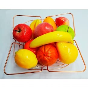 1 ;Fruteira Cesta De Mesa Cozinha Rose Gold De 28cm;1 Kit ;Frutas Artificiais Isopor 12 Peças;