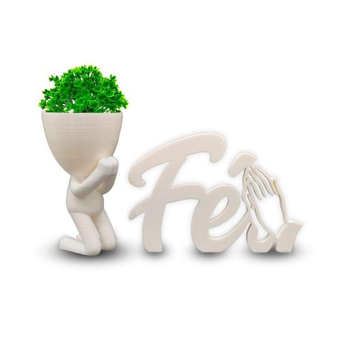 Kit Decoração ReligiosaINCLUSOS NO PEDIDOPalavra Fé em 3D: Altura 12 cm, Comprimento: 17,4 cm e Espessura de 1,2 cm.Modelo Orando: Altura 13 cm, Diâmetro da boca 7cm;Planta Artificial (Mesma da Imagem Principal)Fabricado com alta tecnologia de Impressão 3D em material ABS, mais resistente e pode ficar exposto ao sol, água por grandes períodos e a temperaturas altas até 85 graus, que não irá sofrer quaisquer deformações.INFORMAÇÕES TÉCNICAS / ESPECIFICAÇÕES• Material: Plástico ABS (Pode ficar exposto ao sol por grandes períodos ou a temperaturas altas até 85 graus