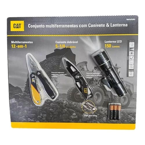 Apresentamos o kit de ferramentas definitivo para quem valoriza versatilidade e praticidade - o Kit 3 Multiferramentas C.A.T. Composto por um alicate robusto, um versátil e uma lanterna potente, este kit é a resposta para todas as suas necessidades de reparo e exploração.