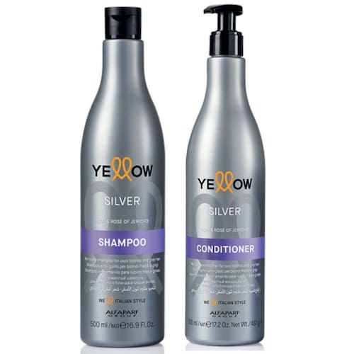 Este kit contém 01 shampoo yellow silver 500ml01 condicionador yellow silver 500mlElimine agora dos seus cabelos os tons amarelos/alaranjados indesejados.Para louros frios, brancos e/ou cinza, naturais e luminososOs reflexos amarelosTe explicamos as causas mais comuns...Calor do secador e da pranchaPoluição externa e internaShampoo yellow silver Shampoo tonalizante anti-amarelo para louros frios e cinzaBenefício evidenteEnquanto limpa, o seu pigmento roxo elimina os tons amarelo/laranja, restituindo a cor desejada ao cabelo.Cabelos amarelados nunca maisModo de usoAplicar nos cabelos úmidos, deixar atuar entre 3 a 5 minutos e enxaguar. Utilizar 1 ou 2 vezes por semana.Contém ingredientes extraídos da naturezaContra reflexos amarelosBagas de açaíFruta de cor intensa púrpura, Esta é a contracor por excelência dos tons amarelosAtua mais internamente nas causas que levam ao amarelamento dos cabelos.Rosa de jericóUsada em casa para neutralizar a presença de odores e fumos desagradáveisNo cabelo cria um escudo externo capaz de protegê-lo do amarelamento devido à poluição diária.Condicionador yellow silver 500mlConfere ao cabelo suavidade maciez extrema enquanto seu pigmento roxo elimina os tons amarelo/laranja que restituem a cor desejada.Para aplicar 1 ou 2 vezes por semana.Uso no salão e em casa.Modo de aplicação:Aplicar nos cabelos úmido, deixar atuar entre 5 a 8 minutos e a seguir enxaguar.Utilize 1 ou 2 vezes por semana
