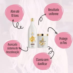 O.274893/2018-14 o pó descolorante platine precision white abre até 10 tons e proporciona um resultado uniforme, proteção, hidratação, sedosidade e brilho. modo de usar: acrescente a medida desejada do pó descolorante em um recipiente não metálico. Adicione o oxidante aos poucos e misture até formar um creme homogêneo, sempre na proporção 1: 2 uma medida de pó para duas medidas de ox . Siga rigorosamente as instruções de uso e faças testes de toque e mechas antes de aplicar. Após o término do tempo de ação, enxágue bem com água morna e lave os cabelos como de costume. Hidratar para melhor resultado. teste de mecha: separe uma mecha fina do alto da cabeça, misture um pouco do produto e aplique na mecha, deixando o tempo de ação indicado e então a lave. Respeite a proporção utilizada na prova do toque. Se o cabelo ficar quebradiço ou houver aquecimento, é sinal de que o seu cabelo não se encontra em condições para o uso do produto. Atenção não utilize água oxigenada acima de 13 volumes para clareamento de pelos do corpo sem proteção prévia da pele. As oxidantes estabilizadas ou água oxigenada da dyusar professional possuem fórmula estabilizada, cremosa e perfumada, além de proporcionar uniformidade e brilho. modo de uso: misturar a emulsão oxidante com a tintura ou descolorante, conforme as proporções de diluição aconselhadas para cada tipo de produto.Cuidados: contém substâncias passíveis de causar alergia na pele. Antes de usar, faça a prova de toque. Não usar nos cílios e sobrancelhas pois pode causar irritação nos olhos ou cegueira. Não aplicar se o couro cabeludo estiver irritado ou lesionado. Em caso de contato, enxaguar com água abundantemente. Manter fora do alcance das crianças. Evitar exposição ao sol. Contém peróxido de hidrogênio. Usar luvas adequadas. Usar luvas apropriadas. Respeitar o tempo de pausa. Não utilizar ferramentas metálicas. Tempo de uso: até 50 minutos. Este produto deve ser utilizado apenas por um cabeleireiro. prova de toque: aplicar pequena quantidade no antebraço ou atrás da orelha. Deixar sobre a pele uma hora. Em seguida enxaguar o local. Aguardar 24 horas. Caso surja sinais de irritabilidade, não utilizar o produto. A máscara s.O.S protect antioxidante da dyusar professional hair é uma máscara capilar que controla o ph dos fios, promove maciez e melhora a elasticidade dos cabelos. Reconstrói e combate os radicais livres, cessando a oxidação dos fios. Age de forma antioxidante, reconstruindo e combatendo os radicais. Modo de usar: após lavar os cabelos aplique o produto sobre toda a extensão dos fios. Massageie e deixe agir por aproximadamente 7 minutos. Enxágue bem. Marca: Não Informado Ean: 7792559193878