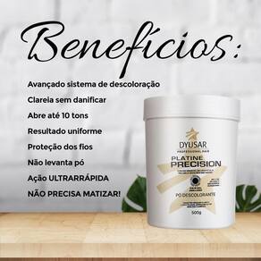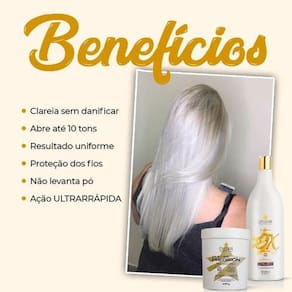 Pó descolorante p. P. Blue descoloração dyusar Modo de usar: acrescente a medida desejada do pó descolorante em um recipiente não metálico. Adicione o oxidante aos poucos e misture até formar um creme homogêneo, sempre na proporção 1:2- uma medida de pó para duas medidas de ox. Siga rigorosamente as intruções de uso e faça testes de toque e mechas antes de aplicar. Aplique a mistura mecha a mecha com a ajuda de um pincel, deixando agir por 30 minutos e sempre verificando os tons a cada 5 minutos. Após o término do tempo de ação, enxágue bem com água morna e lave os cabelos como de costume. Hidratar para melhor resultado. Teste de mecha: separe uma mecha fina do alto da cabeça, misture um pouco do produto e aplique na mecha, deixando o tempo de ação indicado e então a lave. Respeite a proporção utilizada na prova do toque. Se o cabelo ficar quebradiço ou houver aquecimento, é sinal de que o seu cabelo não se encontra em condiçoes para o uso do produto. Atenção não utilize água oxigenada acima de 13 volumes para clareamento de pelos do corpo sem proteção prévia da pele. Oxidante estabilizada de 30 volumes da dyusar cosméticos possui fórmula estabilizada, cremosa e perfumada e proporciona uniformidade e brilho ao resultado. Observação: usar luvas apropriadas. Respeitar o tempo de pausa. Respeitar os oxidantes recomendados. Não utilizar ferramentas metálicas. Não deixar escorrer o produto no couro cabeludo. Tempo de uso: até 50 minutos. Este produto deve ser utilizado apenas por um cabeleireiro. Modo de uso: misturar a emulsão oxidante com a tintura ou descolorante, conforme as proporções de diluição aconselhadas para cada tipo de produto.775961/2020-74 Marca: Não Informado Ean: 7792559154510