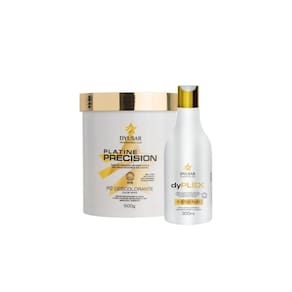 168745/2019-34 O pó descolorante platine precision white abre até 10 tons e proporciona um resultado uniforme, proteção, hidratação, sedosidade e brilho. Modo de usar: acrescente a medida desejada do pó descolorante em um recipiente não metálico. Adicione o oxidante aos poucos e misture até formar um creme homogêneo, sempre na proporção 1: 2 uma medida de pó para duas medidas de ox . Siga rigorosamente as instruções de uso e faças testes de toque e mechas antes de aplicar. Após o término do tempo de ação, enxágue bem com água morna e lave os cabelos como de costume. Hidratar para melhor resultado. Teste de mecha: separe uma mecha fina do alto da cabeça, misture um pouco do produto e aplique na mecha, deixando o tempo de ação indicado e então a lave. Respeite a proporção utilizada na prova do toque. Se o cabelo ficar quebradiço ou houver aquecimento, é sinal de que o seu cabelo não se encontra em condições para o uso do produto. Atenção não utilize água oxigenada acima de 13 volumes para clareamento de pelos do corpo sem proteção prévia da pele. O dy plex protetor de descoloração dyusar cosméticos 300 ml, é um restaurador capilar que proporciona proteção nos processos de coloração e descoloração.168745/2019-34 Modo de usar: adicione de 10 a 12 ml do plex a um recipiente de coloração ou descoloração e siga corretamente o passo a passo e as recomendações correspondentes ao produto utilizado. Marca: Não Informado