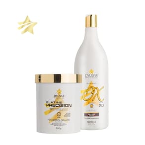 O pó descolorante platine precision white abre até 10 tons e proporciona um resultado uniforme, proteção, hidratação, sedosidade e brilho. Modo de usar: acrescente a medida desejada do pó descolorante em um recipiente não metálico. Adicione o oxidante aos poucos e misture até formar um creme homogêneo, sempre na proporção 1: 2 uma medida de pó para duas medidas de ox . Siga rigorosamente as instruções de uso e faças testes de toque e mechas antes de aplicar. Após o término do tempo de ação, enxágue bem com água morna e lave os cabelos como de costume. Hidratar para melhor resultado. Teste de mecha: separe uma mecha fina do alto da cabeça, misture um pouco do produto e aplique na mecha, deixando o tempo de ação indicado e então a lave. Respeite a proporção utilizada na prova do toque. Se o cabelo ficar quebradiço ou houver aquecimento, é sinal de que o seu cabelo não se encontra em condições para o uso do produto. Atenção não utilize água oxigenada acima de 13 volumes para clareamento de pelos do corpo sem proteção prévia da pele.315844/2018-31 A oxidante estabilizada de 20 volumes da dyusar cosméticos Possui fórmula estabilizada, cremosa e perfumada e proporciona uniformidade e brilho ao resultado. Observação: usar luvas apropriadas. Respeitar o tempo de pausa. Respeitar os oxidantes recomendados. Não utilizar ferramentas metálicas. Não deixar escorrer o produto no couro cabeludo. Tempo de uso: até 50 minutos. Este produto deve ser utilizado apenas por um profissional cabeleireiro. Modo de uso: misturar a emulsão oxidante com a tintura ou descolorante, conforme as proporções de diluição aconselhadas para cada tipo de produto.775961/2020-74 Marca: Dyusar Cosmeticos