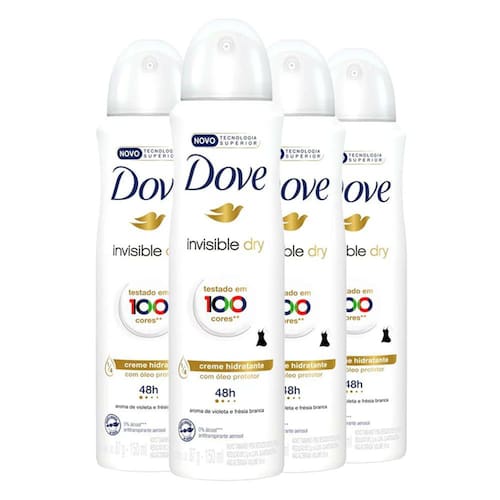 O Desodorante Aerosol Dove Invisible Dry garante proteção nas axilas por até 48hs e proporciona sensação de frescor com um delicado perfume floral. Além disso, evita manchas em roupas brancas e em até 100 cores de tecido, mantendo sua roupa intacta. Com nosso exclusivo ¼ de creme hidratante enriquecido com óleo protetor, a fórmula deste desodorante antitranspirante sem perfume cuida da sua pele, ajuda a pele a se recuperar da irritação e deixa você com axilas macias e confortáveis. Dove é certificada Cruelty-Free pela PETA, sendo assim, você pode confiar que não realizamos e nem realizaremos testes em animais em nenhum lugar do mundo. Além disso, nosso antitranspirante é fabricado com energia elétrica 100% renovável, nossa lata é feita de metal reciclável e o produto não danifica a camada de ozônio. Benefícios: - O Desodorante Antitranspirante Aerosol Dove Invisible Dry não deixa manchas brancas nas roupas, testado em 100 cores de tecidos; - Com tecnologia superior, protege contra o suor e mau odor por até 48h, deixando uma sensação de frescor e sem manchas; - Contém o exclusivo 1/4 de creme hidratante Dove enriquecido com óleo protetor, para axilas ainda mais macias e suaves; - Garante proteção antitranspirante eficaz e o melhor cuidado para a pele das axilas; - Dove Invisible Dry é um desodorante antitranspirante sem álcool e dermatologicamente testado; - Dove não realiza testes em animais, sendo certificada como Cruelty-Free pela PETA, o aerosol não danifica a camada de ozônio e nossas latas são feitas de metal reciclável. Ean: 000000000017