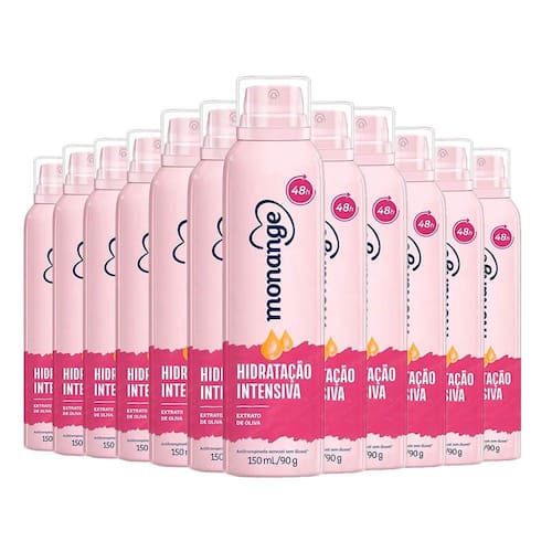 O Desodorante Aerosol Monange Hidratação Intensiva garante uma proteção eficaz para a pele, auxilia no controle da transpiração excessiva da pele, oferecendo hidratação e proteção por até 48 horas. Possui fórmula com ação de hidratação intensiva que age combatendo os 4 sinais de ressecamento da pele da axila: 1. Aparência esbranquiçada; 2. Desidratação; 3. Perda de elasticidade; 4. Toque áspero. Garante uma pele saudável, hidratada, protegida e bem cuidada.
