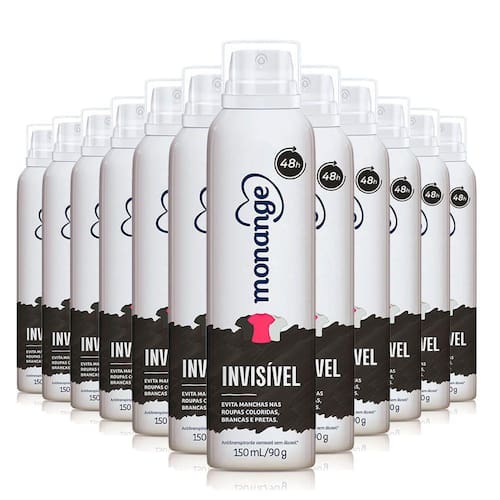 O Desodorante Aerosol Monange Invisível proporciona uma pele seca por muito mais tempo, sem causar irritações. Pode ser utilizado por todos os tipos de pele pois seus agentes hidratantes ajudam a manter a pele macia e livre de irritações. Além de deixar um perfume suave durante todo o dia. O Desodorante Aerosol Monange Invisível reduz a quantidade de resíduos nas roupas pretas, brancas ou coloridas, ao mesmo tempo em que oferece hidratação e proteção intensa para as axilas.