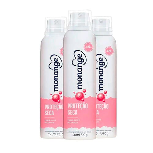 O Desodorante Monange Proteção Seca é antitranspirante de alta performance e garante proteção 48 horas. Possui uma fragrância floral suave com perfeito equilíbrio reconfortante do talco, deixando a pele com sensação prolongada de banho. Com rápida absorção, o desodorante proporciona toque seco, pele macia e nutre até a 2ª camada da pele*. A linha de desodorantes Monange não contem álcool etílico em sua formulação e é dermatologicamente testada. *A segunda camada da pele é a subcórnea da epiderme e os resultados foram obtidos por meio de prova instrumental