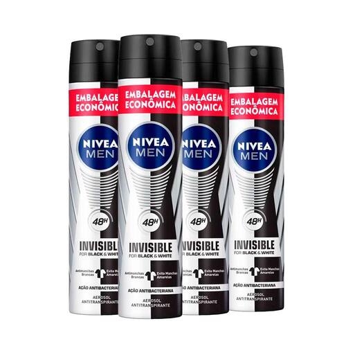 Kit Desodorante Aerosol Nívea Black & White Masculino 200ml - 4 unidades