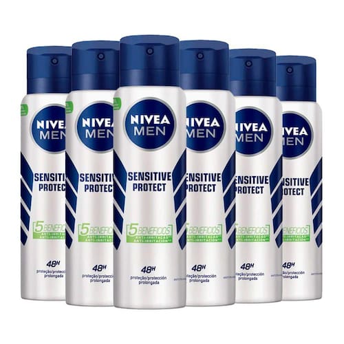 Kit Desodorante Aerosol Nivea Sensitive Protect For Men 150ml - 6 unidades