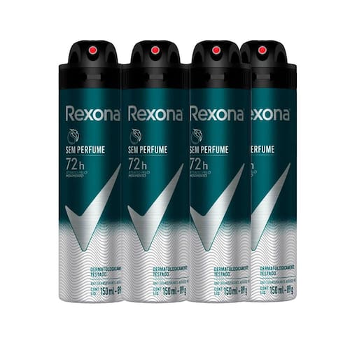 O Kit Desodorante Aerosol Rexona Men Sem Perfume 150ml - 4 Unidades oferece máxima proteção contra a transpiração excessiva, sem deixar resíduos. Desenvolvido especialmente para homens que buscam máxima proteção durante todo o dia, proporcionando proteção adequada contra o mau odor e o suor. Sua exclusiva tecnologia Motion Sense permite que quanto mais você se movo, mais combate o suor. Além disso, oferece proteção prolongada, por até 72 horas, para que você fique protegido o dia todo com muito mais refrescância, independente dos seus movimentos.