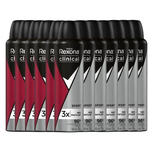 O Kit Desodorante Antitranspirante Aerosol Rexona Clinical Men Sport 150ml - 12 Unidades proporciona proteção máxima para as axilas, sua fórmula eficaz oferece 3X mais proteção que um antitranspirante comum. Rexona clinical oferece proteção avançada e duradoura contra a transpiração e o mau odor, deixando você mais seguro e mantendo a sensação de refrescância o dia todo. Um produto de alta qualidade oferece proteção avançada e duradoura contra a transpiração e o mau odor.