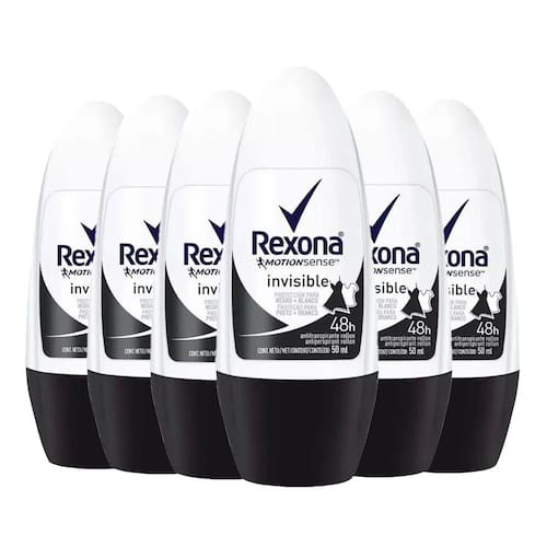 Kit Desodorante Roll On Rexona Invisible Feminino 50ml - 6 Unidades