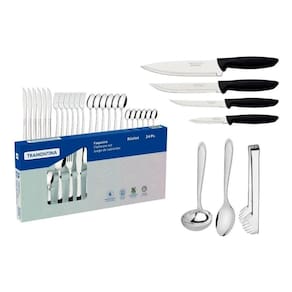 Kit dia das mães 31 peças tramontina talheres facas cozinha Complete sua mesa e sua cozinha com este prático e elegante conjunto o faqueiro búzios 24 peças oferece o essencial para servir suas refeições com estilo e funcionalidade. Acompanha também 4 facas da linha plenus e utensílios ideais para o dia a dia:
