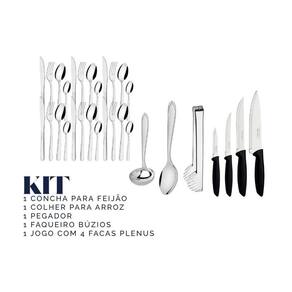 1 faqueiro búzios 24pçs 1 concha para feijão 1 colher para arroz 1 pegador de massas 4 facas plenus