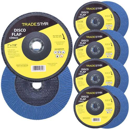 Kit 10 Discos de Lixa Flap Tradestar 7¨ Polegadas Grão 60 para Lixadeira