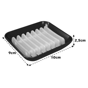 - Medidas da saboneteira: 10cm (Comp.) x 9cm (Larg.) x 2,5cm (Alt.)