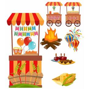 Kit Display Festa Junina Com 7 Peças + Painel - 1 Lona tamanho 1,00 x 1,50mt - 1 Totem de Chão com 67cm Altura x 42cm Largura - 6 Display de Mesa com 22cm no seu lado maior Material : Madeira Mdf 3mm com Recorte a Laser - Enviamos para todo Brasil - Impressão com Qualidade e Imagens em alta definição - Acabamento Perfeito : Os display são simplesmente lindos, Segue junto a base de apoio para Que fiquem em pé com facilidade e segurança.