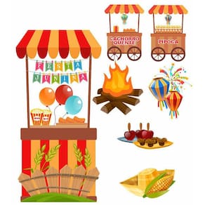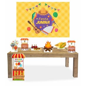 Kit Display Festa Junina Com 7 Peças + Painel - 1 Lona tamanho 1,00 x 1,50mt - 1 Totem de Chão com 67cm Altura x 42cm Largura - 6 Display de Mesa com 22cm no seu lado maior Material : Madeira Mdf 3mm com Recorte a Laser - Enviamos para todo Brasil - Impressão com Qualidade e Imagens em alta definição - Acabamento Perfeito : Os display são simplesmente lindos, Segue junto a base de apoio para Que fiquem em pé com facilidade e segurança. Ean: 1001001061266