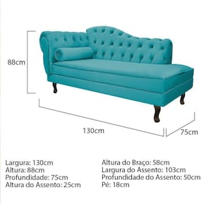 Especificações Técnicas do Kit Recamier Diana 130cm Lado Direito e 02 Poltronas Julia: