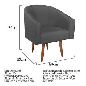 Kit Diva 185Cm Lado Direito E 02 Poltronas Luiza Linho - Doce Sonho Móveis Cinza Escuro
