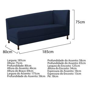 Especificações Técnicas do Kit Recamier Heitor 185cm Lado Esquerdo e 02 Poltronas Luiza: