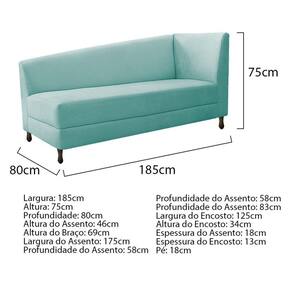 Kit Diva 185Cm Lado Esquerdo E 02 Poltronas Luiza Suede - Doce Sonho Móveis Azul Tiffany