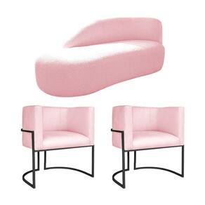 Kit Divã Luna 140cm Lado Esquerdo E 02 Poltronas Base De Ferro Preto Suede Cor Rosa Bebê