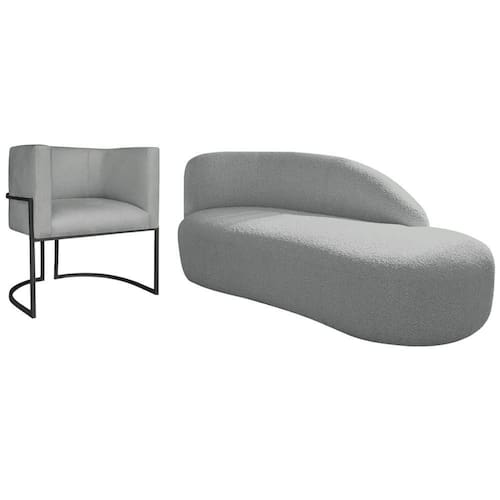 Kit Divã Luna 185cm Lado Direito E 01 Poltrona Base De Ferro Preto Bouclé Cinza