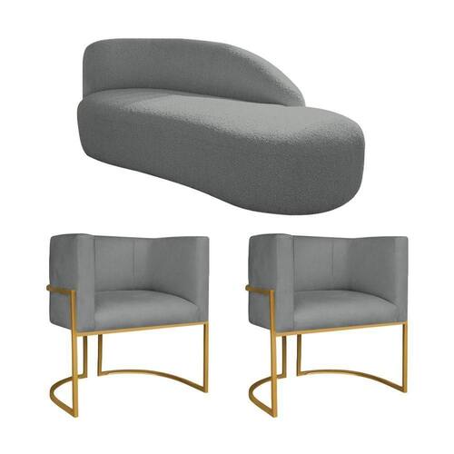 Kit Divã Luna 185cm Lado Direito E 02 Poltronas Base De Ferro Dourado Suede Cor Cinza