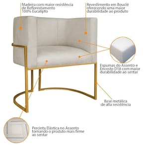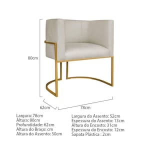 Especificações Técnicas da Poltrona Luna Base de Ferro: - Altura: 80 cm; - Largura: 78 cm; - Profundidade: 62 cm; - Altura do Assento: 50 cm; - Largura do Assento: 52 cm; - Altura do Encosto: 31 cm; - Espessura do Assento: 13 cm; - Espessura do Encosto: 12 cm; - Peso Suportado: 120 kg.