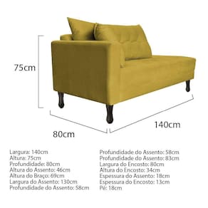 Especificações Técnicas do Kit Recamier Azura 140cm Lado Direito e 02 Poltronas Classic: