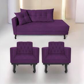 Kit Diva Recamier Azura 160cm Lado Direito E 02 Poltronas Classic Suede - Doce Sonho Móveis Cor Roxo