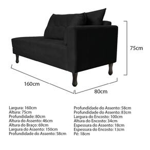 Especificações Técnicas do Kit Recamier Azura 160cm Lado Esquerdo e 02 Poltronas Classic: