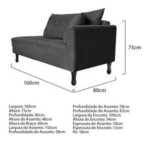 Especificações Técnicas do Kit Recamier Azura 160cm Lado Esquerdo e 02 Poltronas Classic: