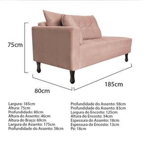 Especificações Técnicas do Kit Recamier Azura 185cm Lado Direito e 02 Poltronas Classic: