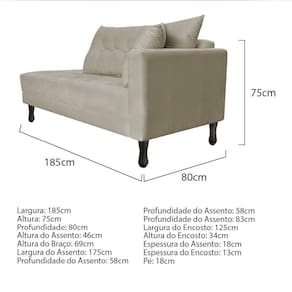 Especificações Técnicas do Kit Recamier Azura 185cm Lado Esquerdo e 02 Poltronas Classic:
