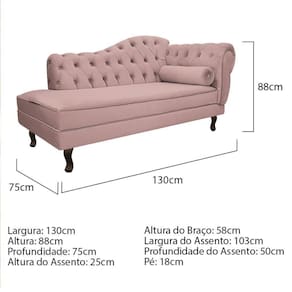 Especificações Técnicas do Kit Recamier Diana 130cm Lado Esquerdo e 02 Poltronas Julia: