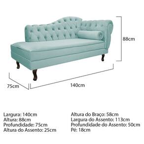 Especificações Técnicas do Kit Recamier Diana 140cm Lado Esquerdo e 01 Poltrona Classic: