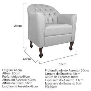 - Tipo de Assento: estofado e com espuma de densidade D-18 (Divã Diana), D-26 (Poltrona Julia);